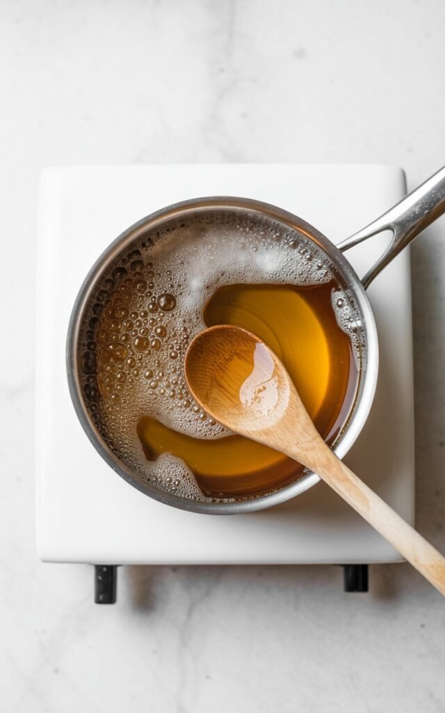 As the mixture heats, you’ll notice the syrup take on a beautiful translucent color.