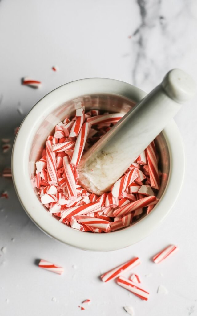 Trust me, unwrapping and crushing candy canes is sticky work, but it’s worth it for the flavor.