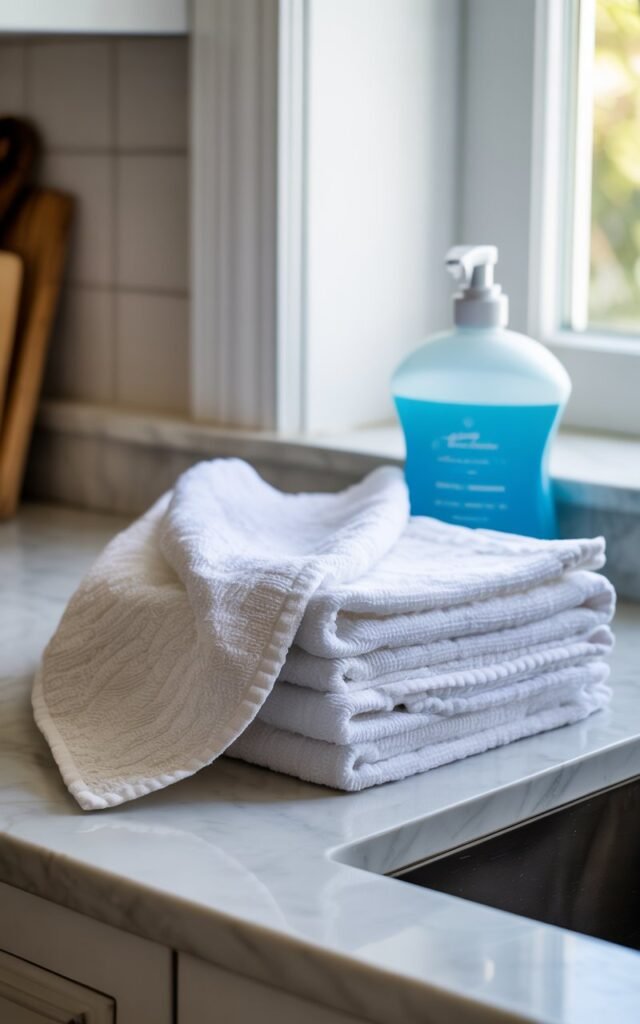 Kitchen towels live hard lives. They soak up grease, wipe surfaces, and get reused far more than they should.
