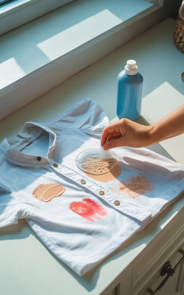 Dawn dissolves the oils in makeup quickly. I apply it directly to the stain, let it sit briefly, and wash as usual. This has saved pillowcases, shirts, and even towels I once considered ruined.