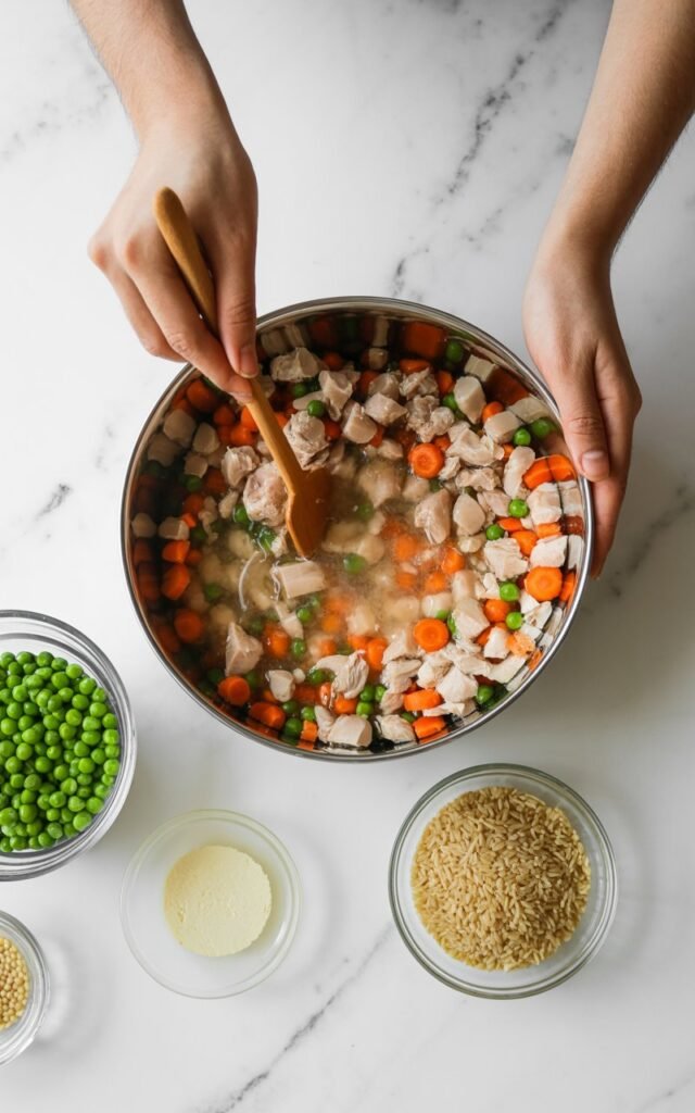 - Cook the meat: Brown the ground turkey or chicken in a large pot.
