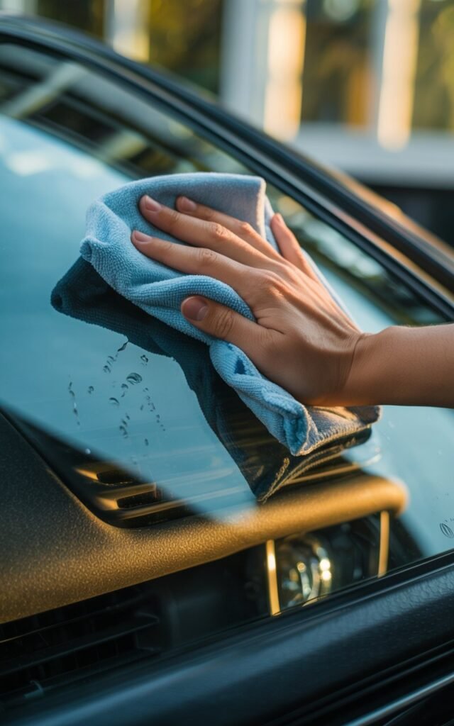 • Don’t forget vents and dashboard: Dust here often ends up back on the glass.