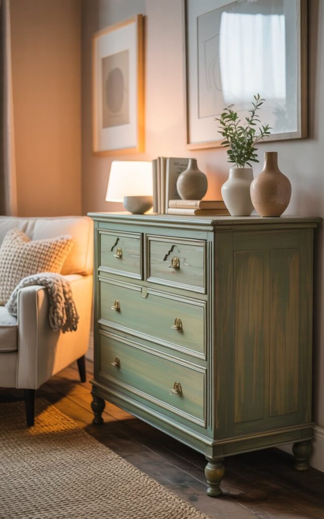Sometimes I paint only part of a piece — the base, the drawers, or the interior — and leave the rest as-is.